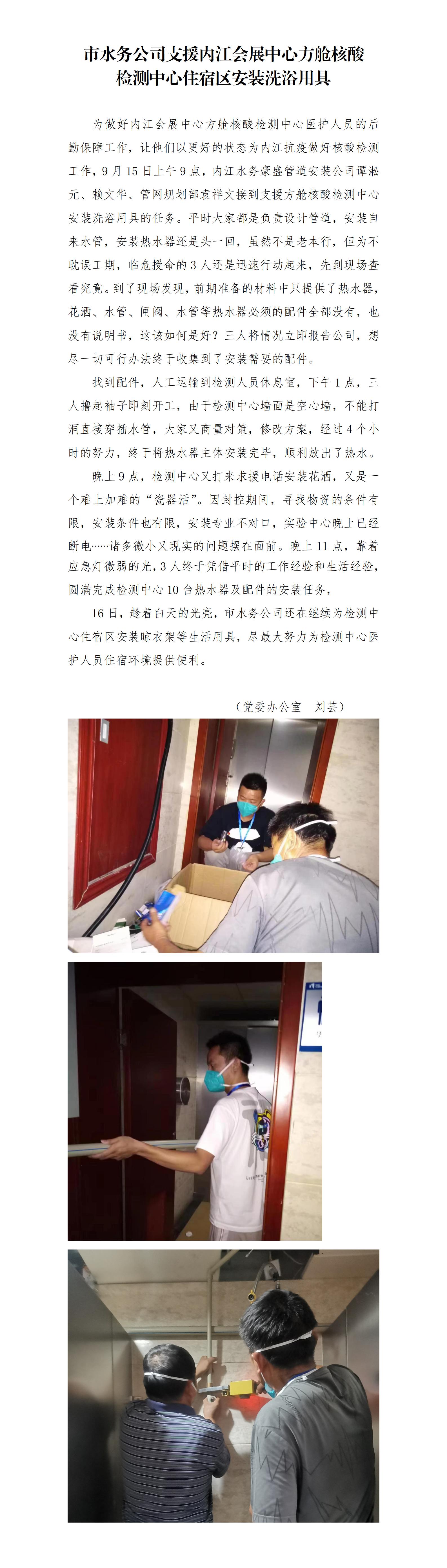 市水務公司支援內江會展中心方艙核酸 檢測中心住宿區安裝洗浴用具