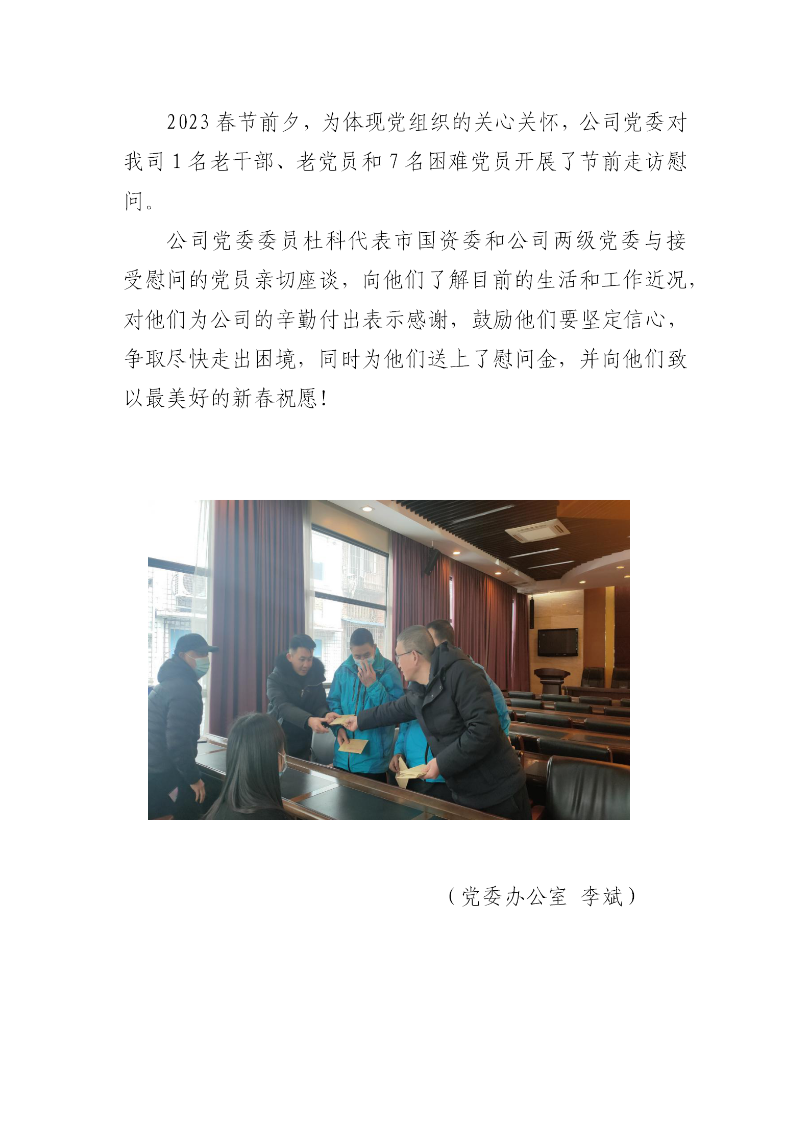 公司黨委開展春節走訪慰問
