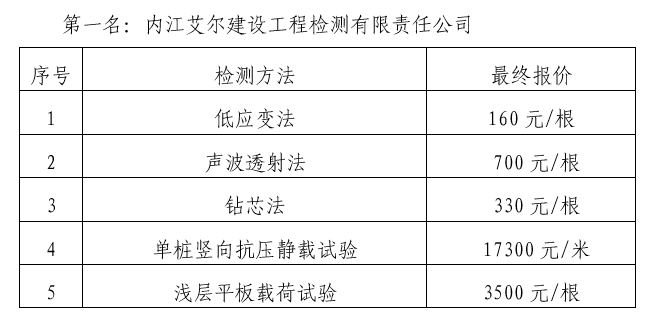 內(nèi)江市污水處理廠提標改造工程樁基檢測單位中標結(jié)果公示