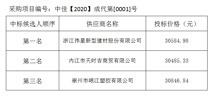 內江市水務有限責任公司PE給水管及管件采購項目評標結果公示