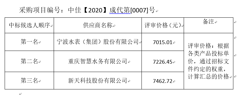 內(nèi)江市水務(wù)有限責(zé)任公司水表采購項目 評標(biāo)結(jié)果公示