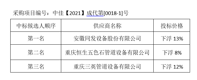 內江市水務有限責任公司自來水管道哈夫節產品采購項目(第二次)評標結果公示
