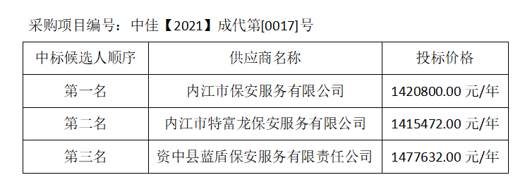 內(nèi)江市水務(wù)有限責(zé)任公司保安服務(wù)項(xiàng)目評標(biāo)結(jié)果公示