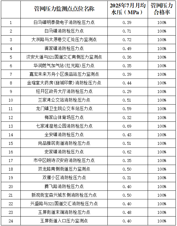 內(nèi)江市水務(wù)有限責(zé)任公司2025年7月管網(wǎng)壓力月報(bào)