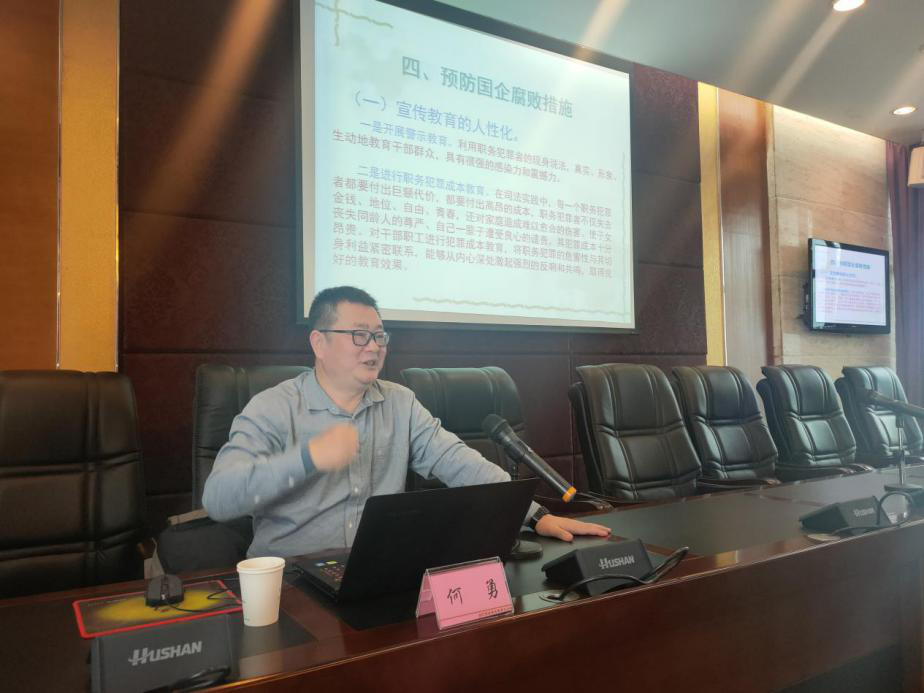 講座上,何勇以“國有企業預防腐敗實踐探索”為題,從建國以來反腐敗歷史的簡要回顧、當前國企領域反腐敗的形勢、水務企業違紀違法典型案例、預防國企腐敗措施四個方面,剖析腐敗根源,深入淺出地將國有企業預腐防變工作做了詳細的梳理和講解,具有很強的教育性和警示性。公司黨委副書記、總經理李濤結合講座內容,對進一步抓好黨風廉政工作提了四點要求:一是要強化政治定力;二是要抓實紀法學習;三是要堅持嚴于律己;四是要自覺接受監督。李濤強調,講座的目的在于進一步提高干部職工對黨風廉政建設重要性的認識,切實加強廉潔自律教育,將黨風廉政建設不斷引向深入。
