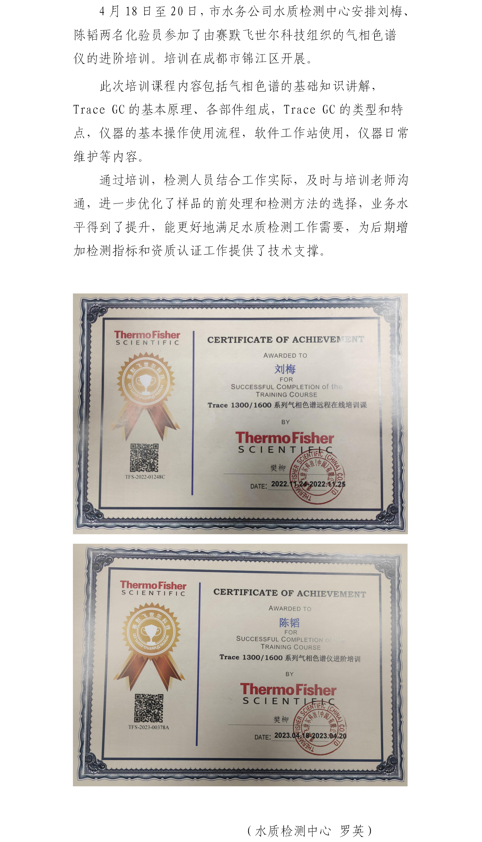 水質(zhì)檢測中心組織職工參加氣相色譜儀進階培訓