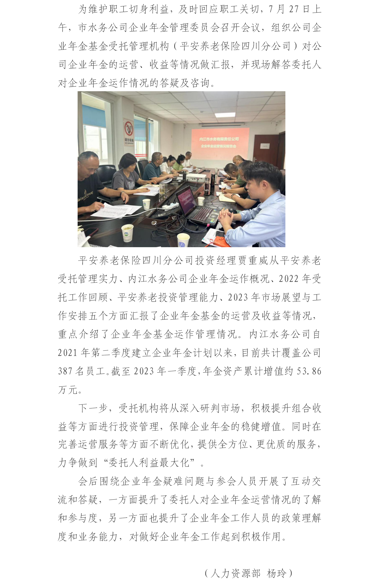 市水務(wù)公司召開企業(yè)年金運(yùn)營情況報(bào)告會