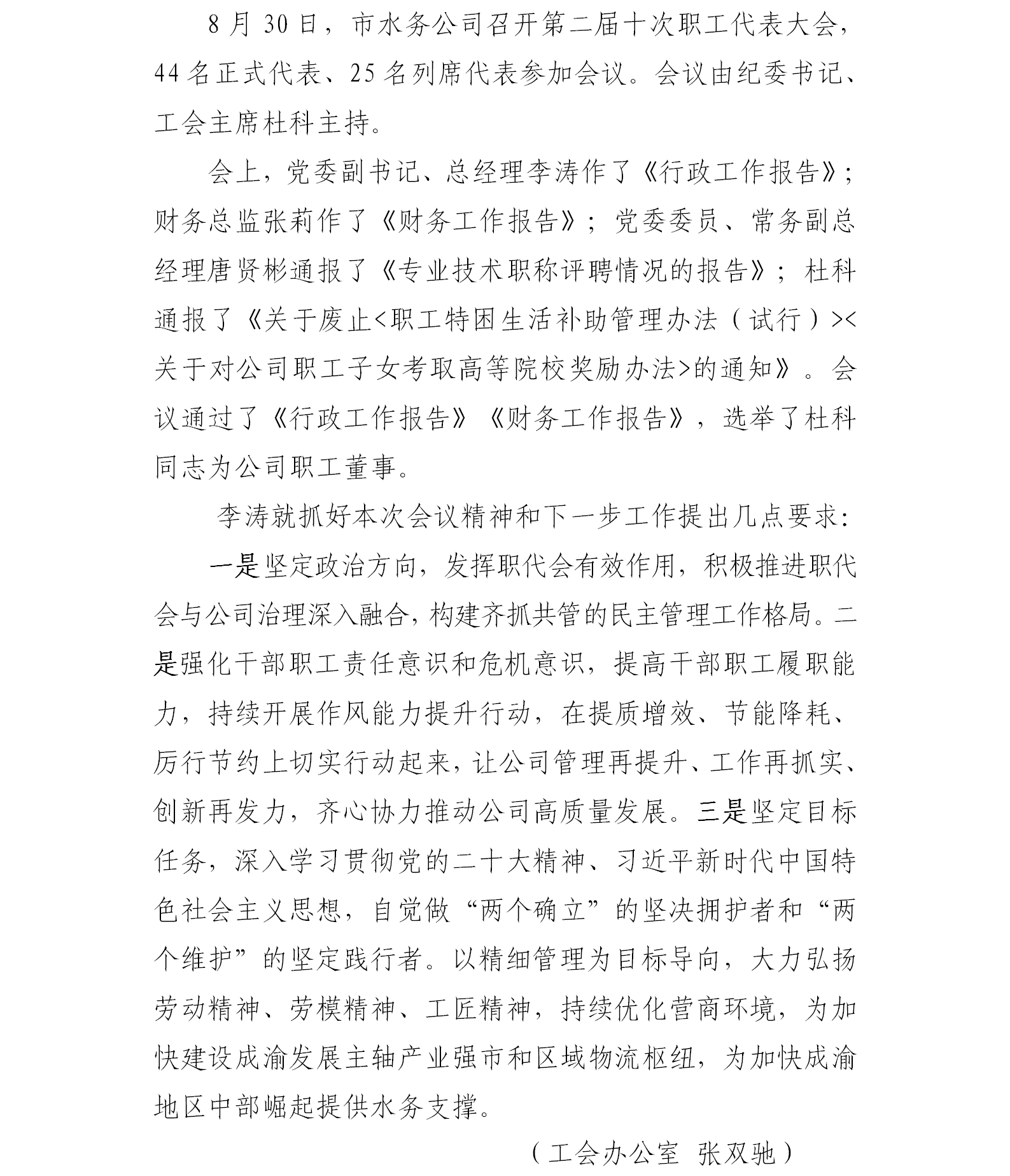 市水務公司召開第二屆十次職工代表大會