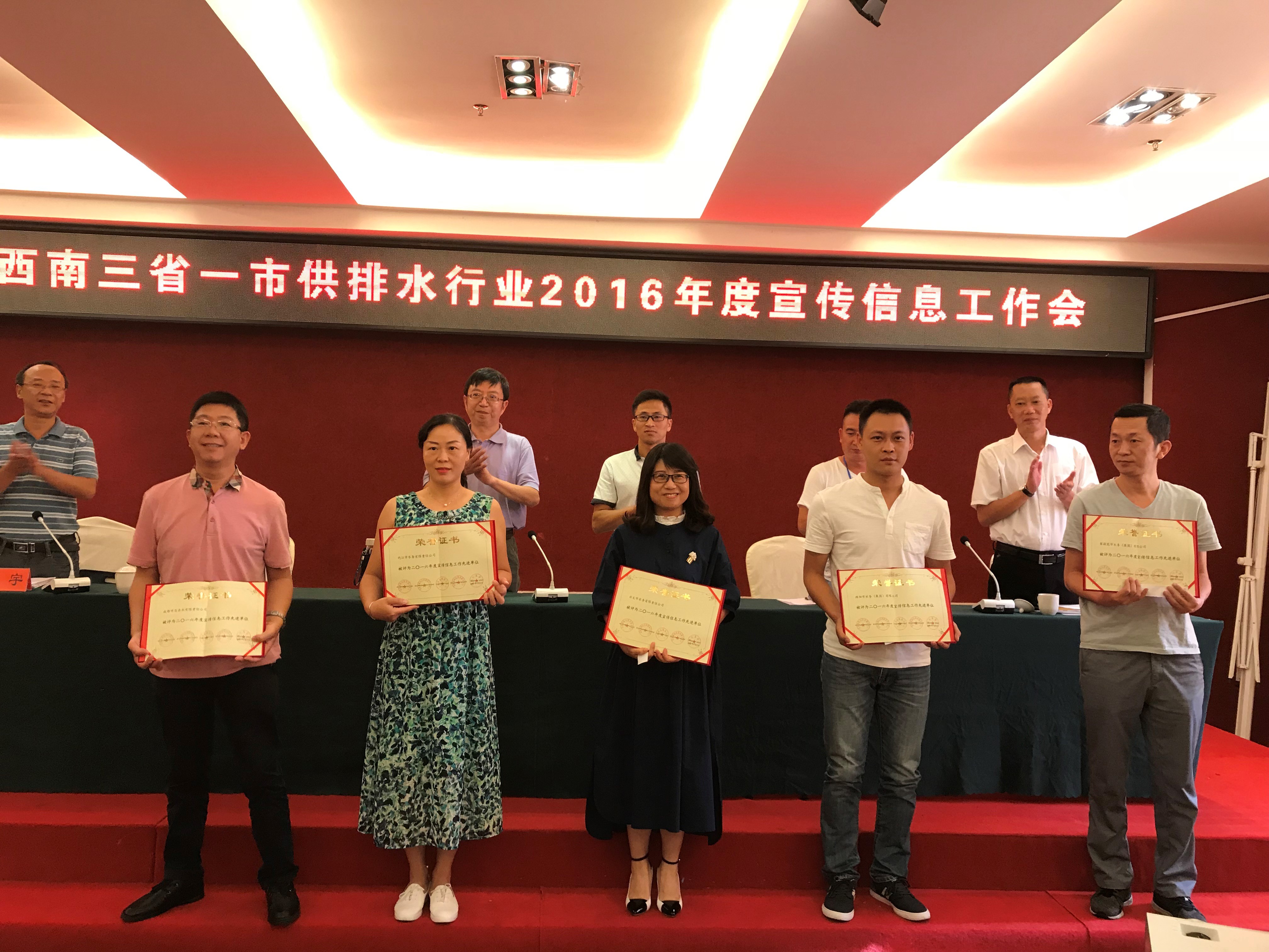 會上,川、滇、黔、渝城鎮供水排水協會領導對宣傳信息工作作了發言。《城鎮水務》雜志社總結了2016年度宣傳信息工作,表彰了宣傳信息工作先進單位和優秀通訊員。我司榮獲西南三省一市供排水行業2016年度宣傳信息工作先進單位,張旭獲優秀通訊員二等獎,柏月榮獲三等獎。