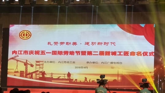2018年4月26日下午,由市總工會舉辦的“禮贊勞動美·建功新時代”內江市慶祝五一國際勞動節暨第二屆“甜城工匠”命名儀式在錦江國際酒店隆重舉行,市委、市政府主要領導參加了本次活動。