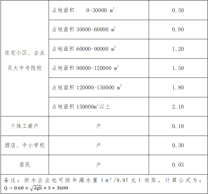 內江市水務有限責任公司探漏服務收費標準